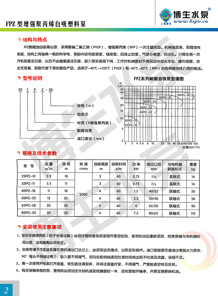博生牌FPZ型直聯式塑料自吸泵