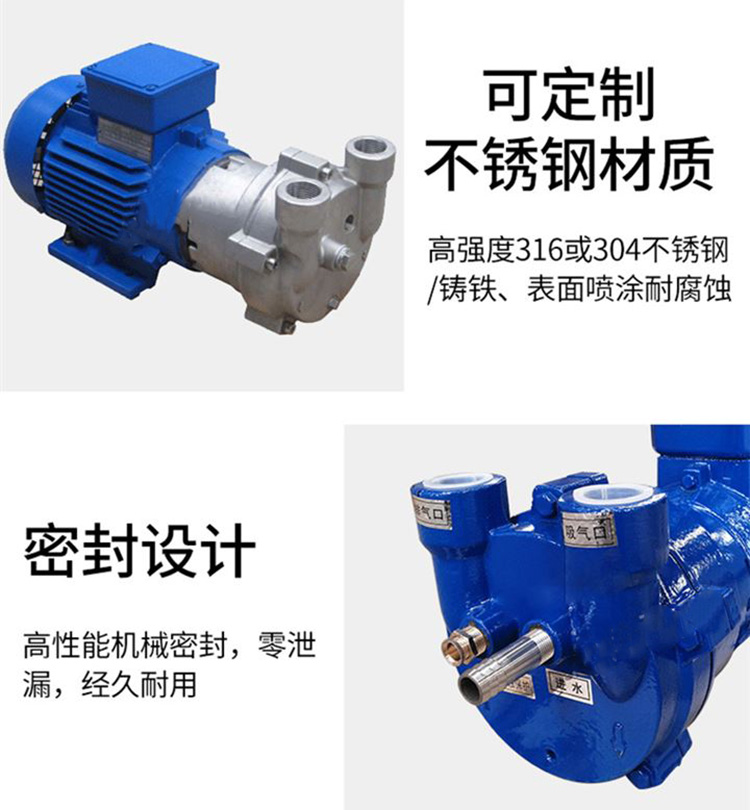 2BV系列水環真空泵為整體結構-機泵同軸的單級泵。軸封采用機械密封,具有結構簡單,安裝簡捷、無油、安全可靠特點。