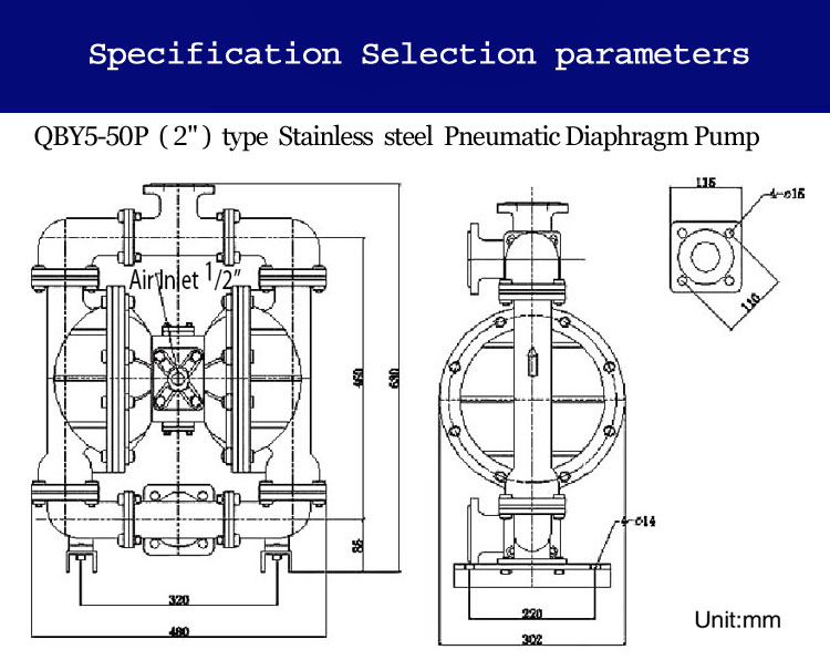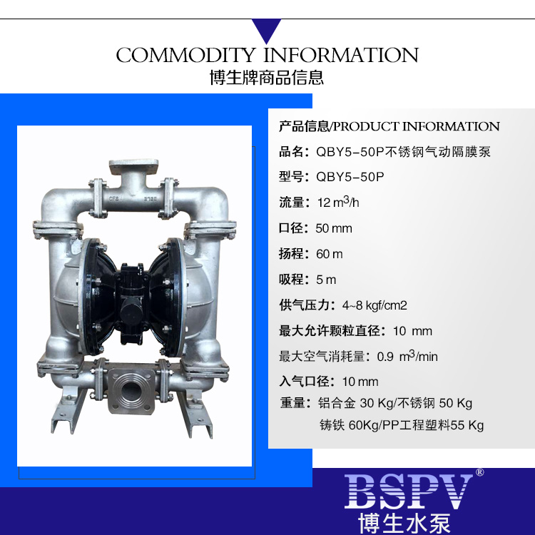QBY5-50P型不銹鋼氣動(dòng)隔膜泵